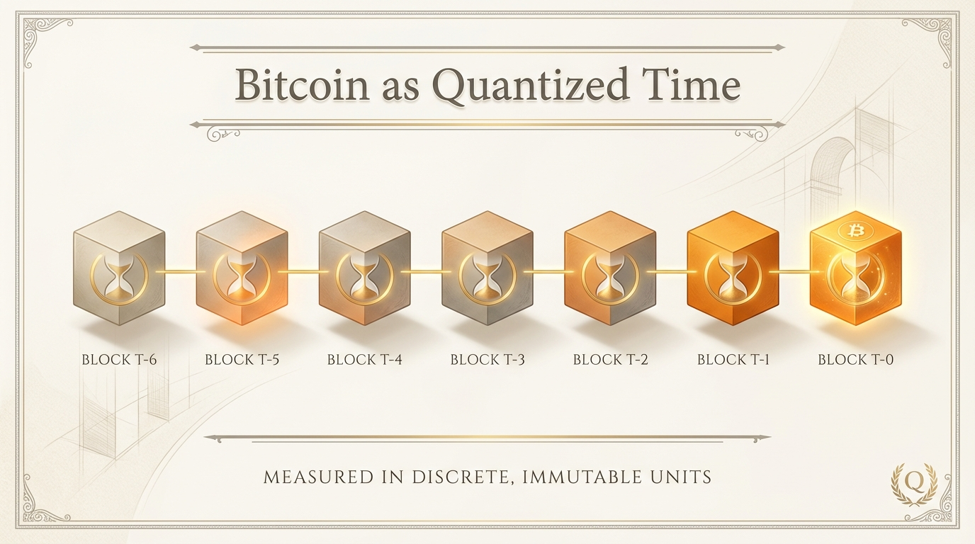 ① Bitcoin blocks are quantized time. Each confirmed block is an irreversible measurement, not merely a record, but an act of discretizing reality.